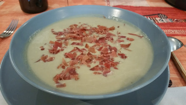 Cada comensal se pondrá el jamón por encima de la crema de alcachofas, según gustos...